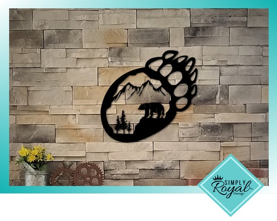 Bear Claw Sign Metal Bear Track With Bear Cabin Wall Art Etsy Uk
